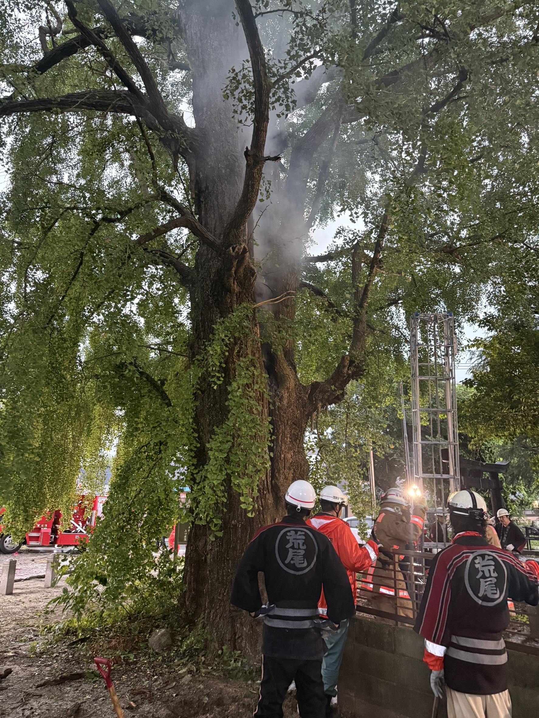R7.9.10 荒尾浄業寺大銀杏に落雷 |